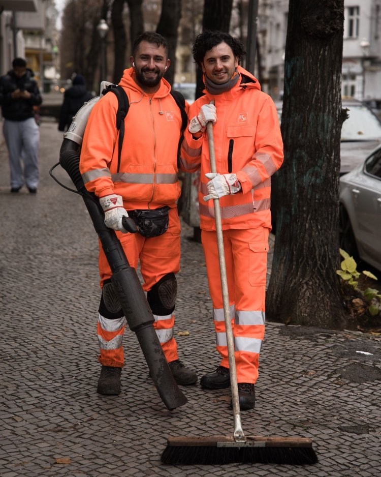 Demir, BSR’nin sokak temizliği biriminde küçük bir ekibe eşlik ederek Rollbergkiez’de bir dizi sokağın temizlenmesine katıldı. Çalışma sırasında yaprak üfleyici (Laubbläser) ve klasik sokak süpürme ekipmanları kullanıldı.